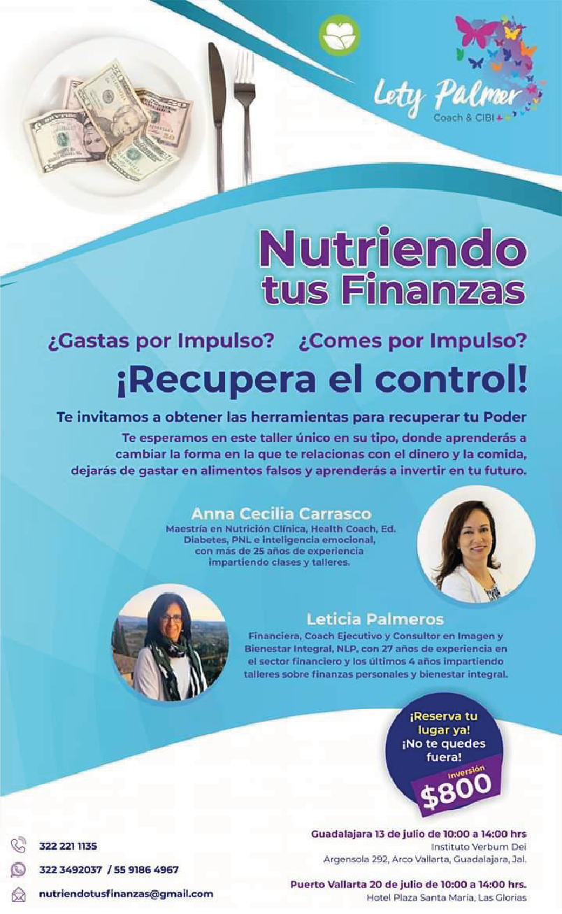 Te esperamos en este talllér único en su tipo, donde aprenderas a cambiar la forma en que te relacionas con el dinero y la comida, dejaras de gastar en alimentos falsos y aprenderas a invertir en tu futuro.