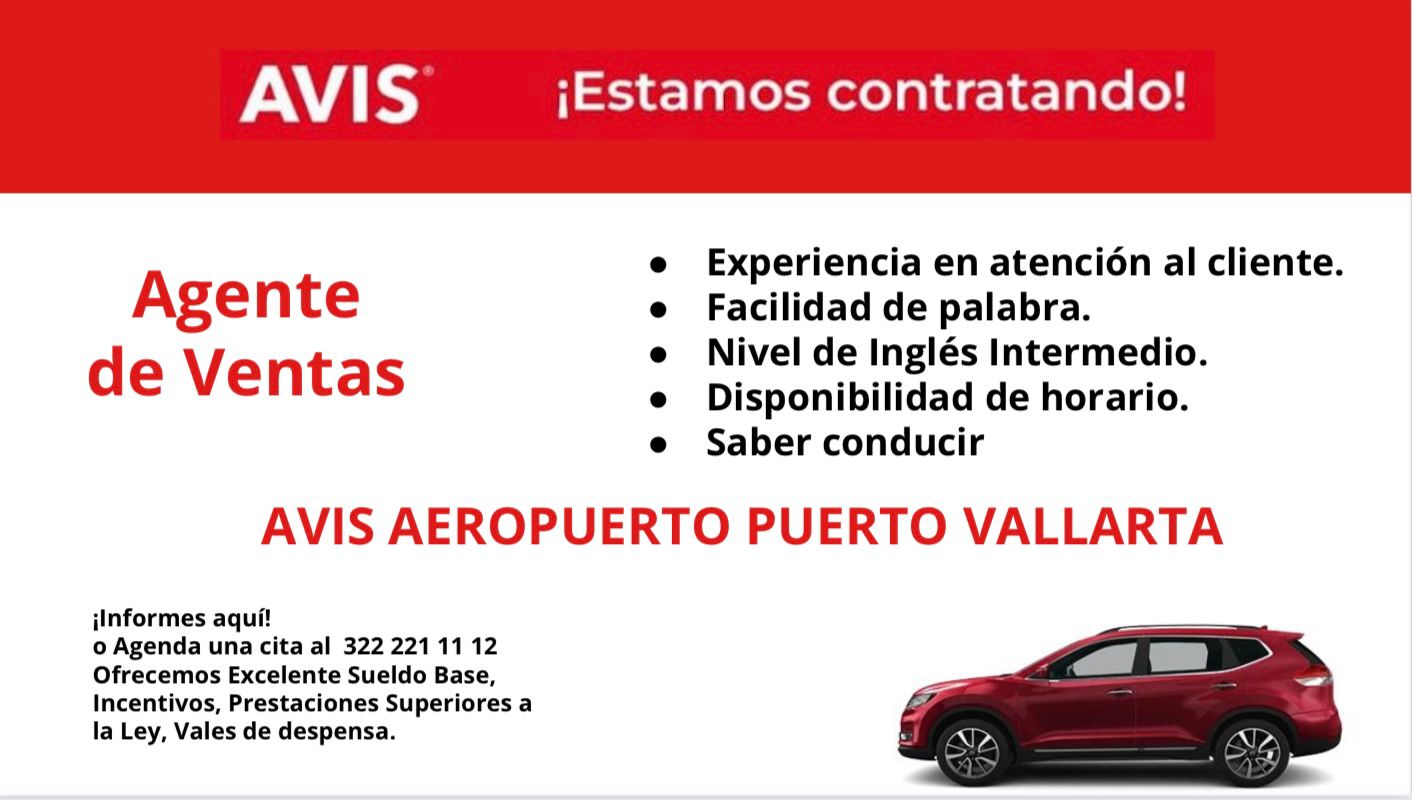 dir AVIS Estamos Contratando! 📢 CONTACTO Agenda tu Cita: 322 221 1112 ✅ LAVADOR DE AUTOS ✅ AGENTE DE VENTAS